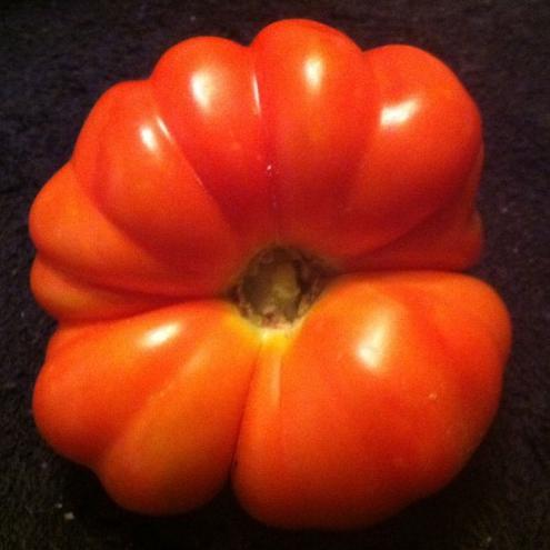 90 days. 20 seeds. The Large Red Tomato is regarded to be a classic garden variety that had been cultivated almost exclusively in the US prior to 1870’s after which there was an explosion of new varieties. The plant yields generous amounts of giant 1 to 2 pound flattened, ribbed red beefsteak tomatoes that taste exquisite with their well balanced sweet/acidic flavor. It is a perfect slicing tomato but is also used for juices and canning. Indeterminate. Open pollinated seeds.